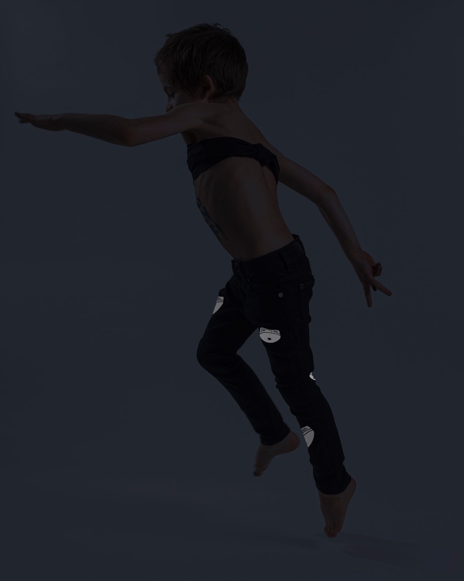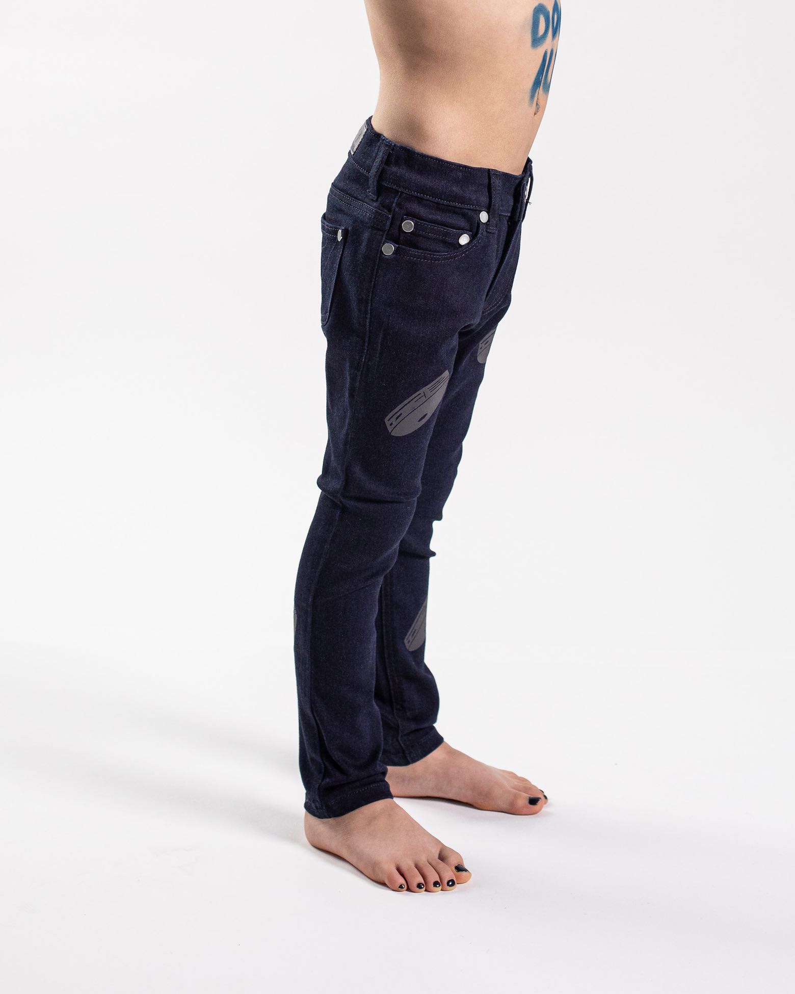 fünf retro-reflektierende gestalten begleiten Dich auf Deiner vintvinkl-jeans. innovatives high-tech material trifft auf jeans fürs leben.